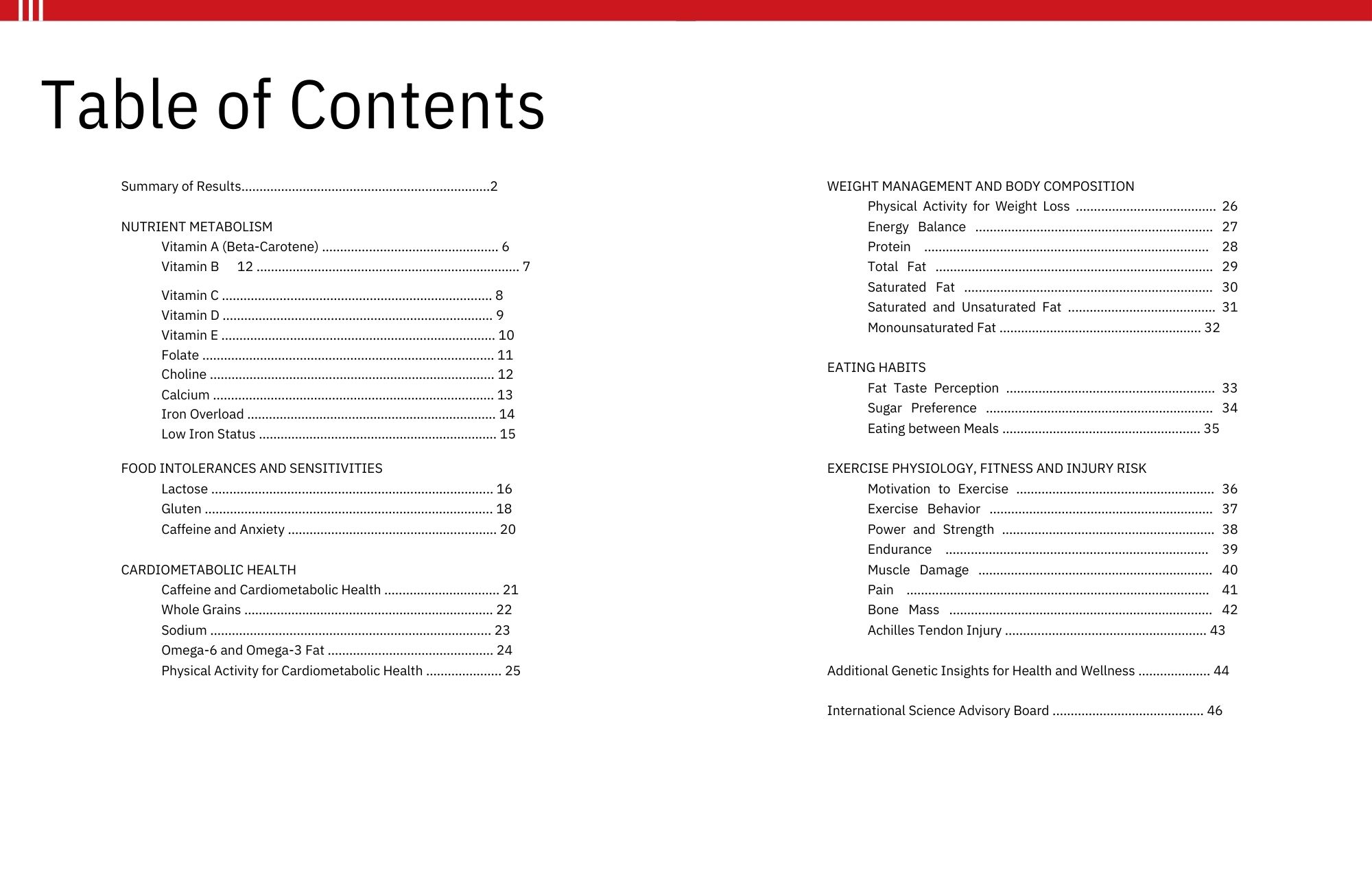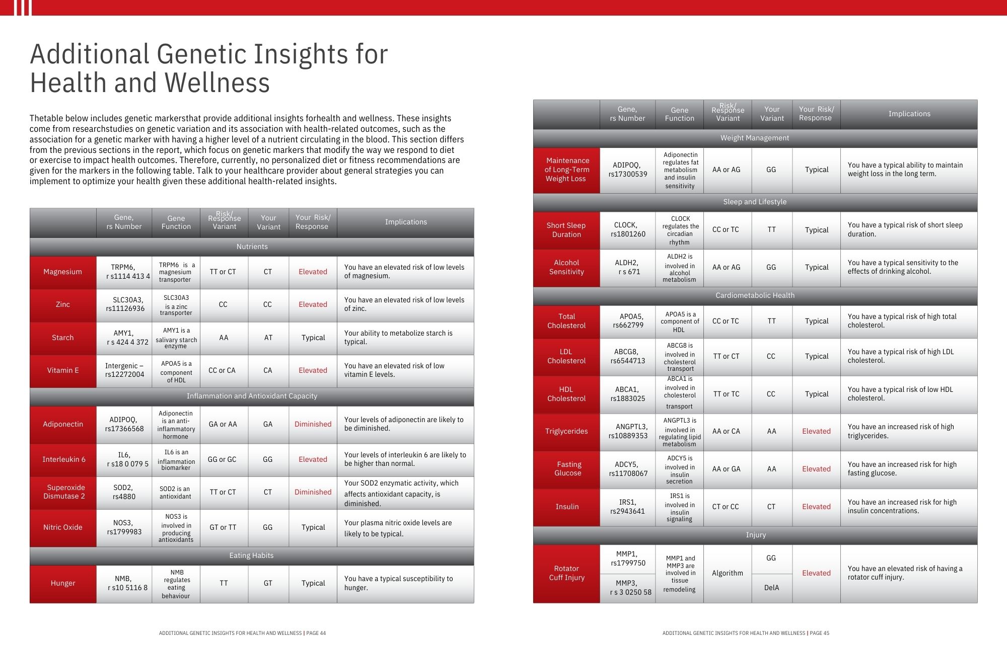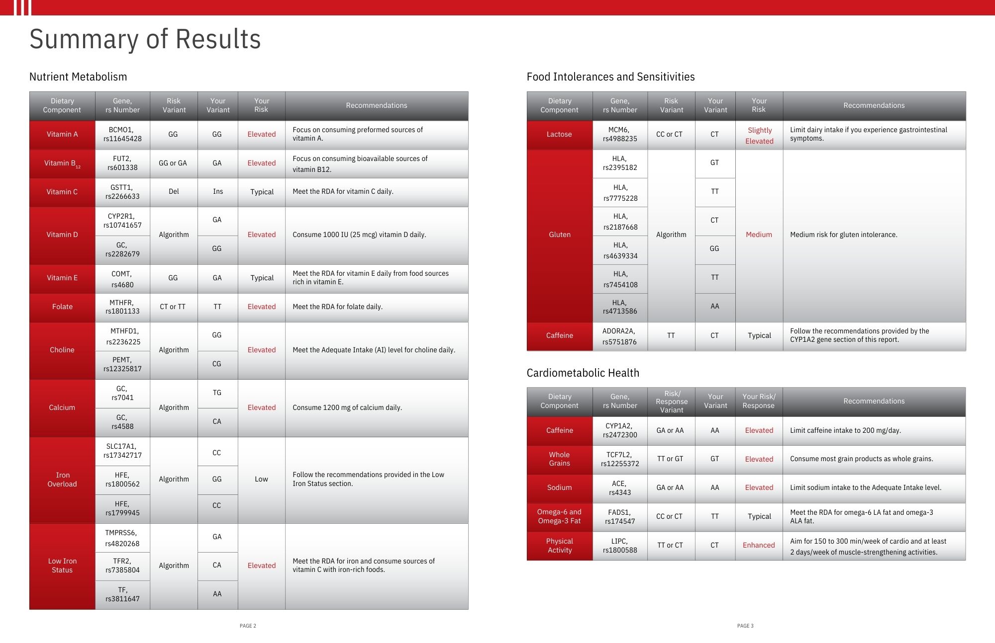 Example report of Baseline Health Analysis test…